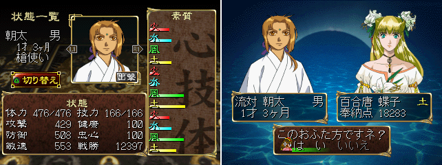 さて、今月は隼君の交神しておきましょう。お相手は蝶子様に再びお願いを。